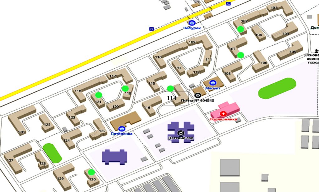 Приспособлены для укрытия подвальные помещения домов №104, 106, 114, 119, 121, 130